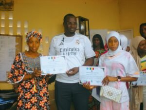 Commune de Diagane Barka, le Conseil Communal de la Jeunesse en partenariat avec la Mairie a tenu une session de formation en pâtisserie (Cake et Pannequet à base de Mil et Maïs) et transformation des produits locaux (jus moringa, Bissab, pastèque, tomate, confiture à base de bissab, du café à base de graine de pain de singe) du 05 au 07 Décembre 2025 à Diagane Barka. Cette formation au bénéfice de 50 jeunes hommes et femmes rentre dans le cadre de notre plan de formation pour l’année 2025. Ces jeunes ont montré lors de cette formation une rigueur, une passion et une discipline ce qui a abouti à une production concrète comme nous pouvons le voir à travers les images. Mentions spéciales au Maire de Diagane Barka, Monsieur Mabousso Diallo, pour sa politique de jeunesse. Il nous a soutenu du début à la fin de cette aventure. Un grand merci au formateur Monsieur NGOM de part sa disponibilité et son humilité. Sans oublier Monsieur Ndao de l’ANPEJ de Foundiougne qui nous a également accompagné durant ces trois jours avec un enrôlement de tous les participants sur la plateforme de l’ANPEJ. Un grand merci aussi au Président du Conseil Départemental de la Jeunesse de Foundiougne, Monsieur Ousmane Ndiaye.